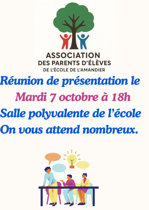 Nous aurons ainsi l'occasion de nous présenter et d'accueillir tous les parents qui souhaitent rejoindre l'association. Nous vous y présenterons les différents projets de l'année et pourrons échanger si vous avez de nouvelles idées.